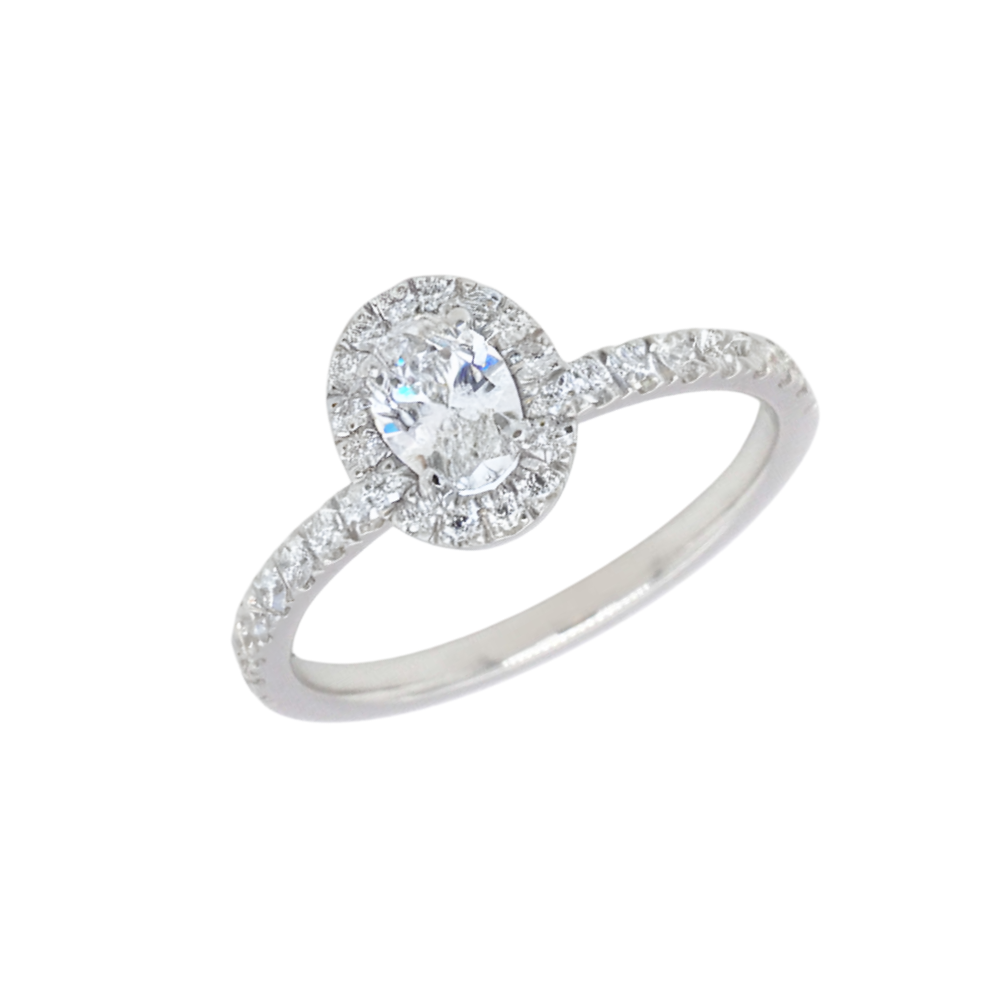 0.34 karatų ovalo formos Halo deimantinis sužadėtuvių žiedas, GIA sertifikatas