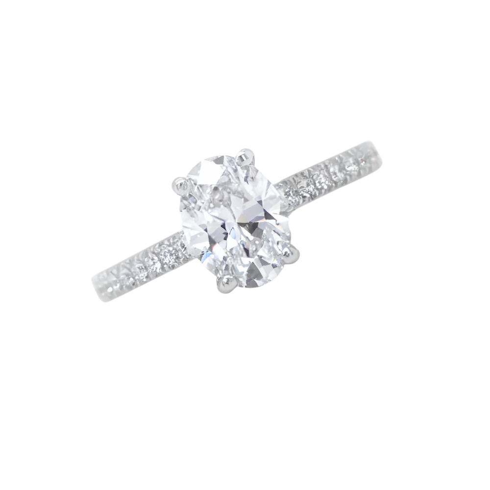 1.00 karatų ovalo formos Pavé deimantinis sužadėtuvių žiedas, GIA sertifikatas