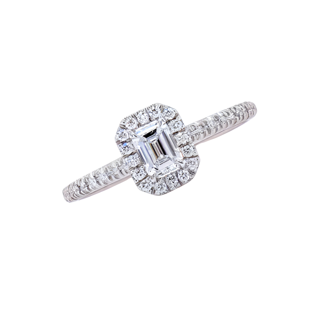 0.30 karatų smaragdo formos Halo deimantinis sužadėtuvių žiedas, GIA sertifikatas