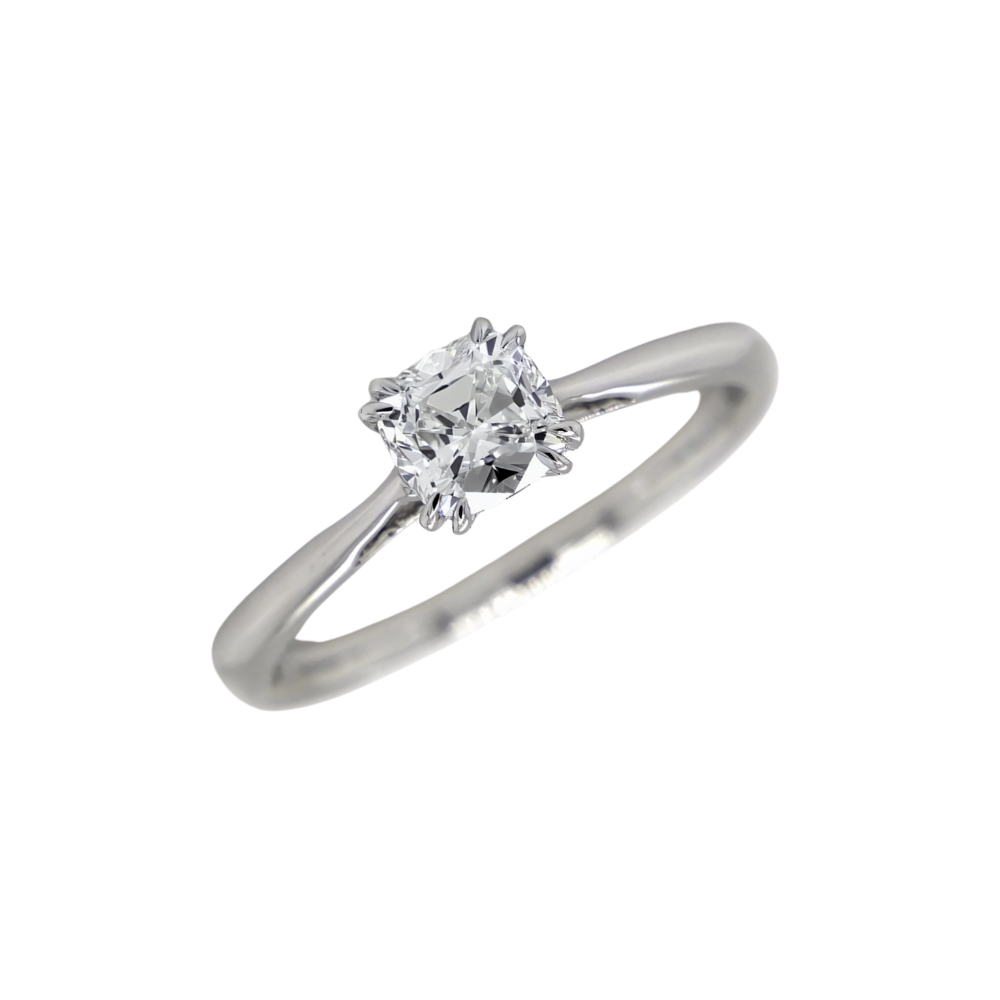 18k baltojo aukso žiedas pagalvėlės formos su natūraliu deimantu – elegantiškas ir nesenstantis pasirinkimas. Prabangus, tobulas rafinuoto stiliaus akcentas.