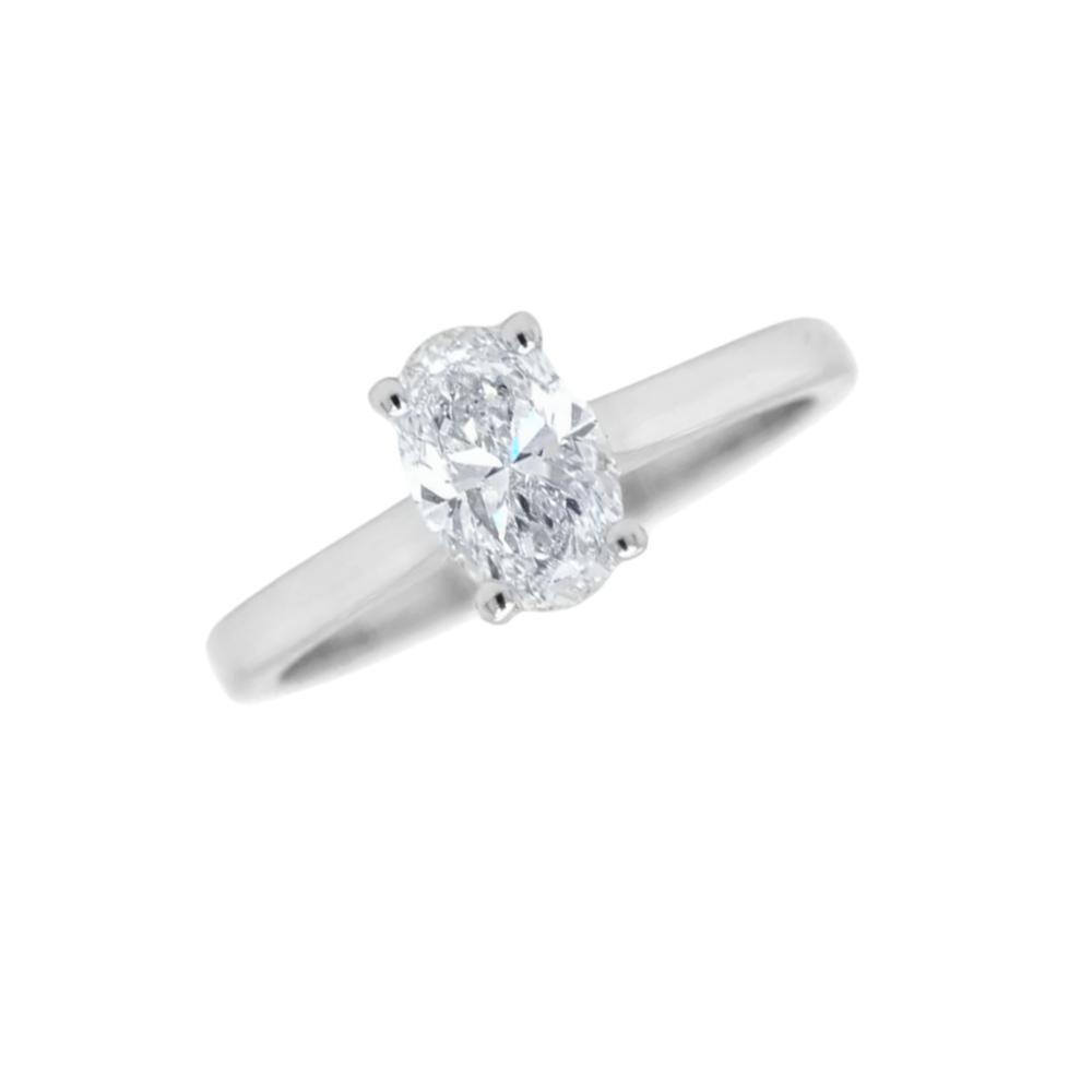 Klasikinis 18k baltojo aukso žiedas su natūraliu ovalo formos deimantu – elegantiškas ir nesenstantis pasirinkimas. Prabangus, tobulas rafinuoto stiliaus akcentas.