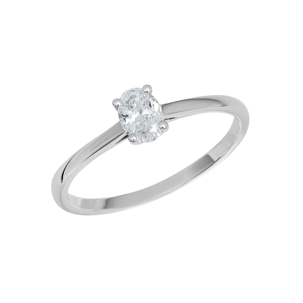 Klasikinis 18k baltojo aukso žiedas su natūraliu ovalo formos deimantu – elegantiškas ir nesenstantis pasirinkimas. Prabangus, tobulas rafinuoto stiliaus akcentas.